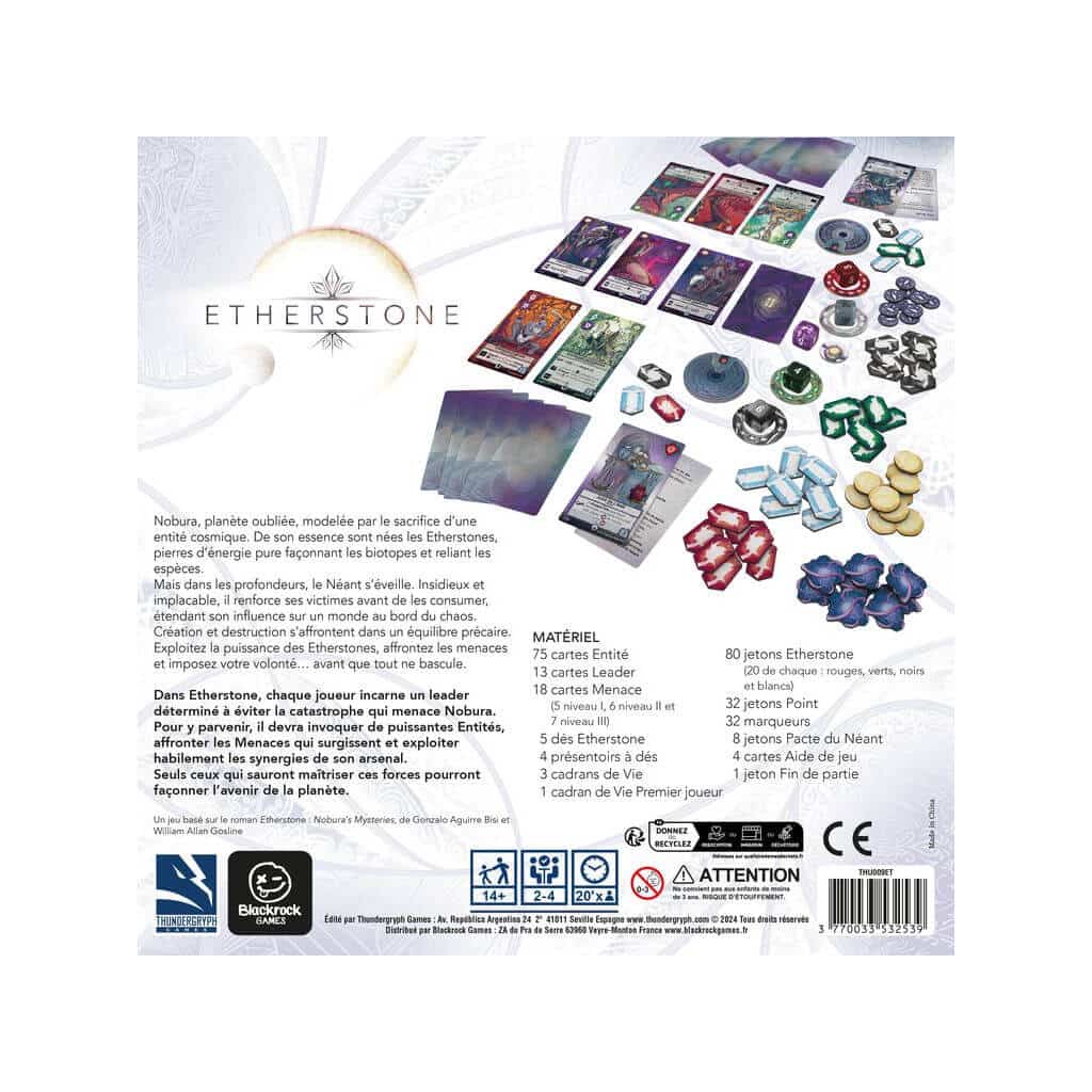 Dans Etherstone, chaque joueur incarne un leader déterminé à éviter la catastrophe qui menace Nobura. Pour y parvenir, il devra invoquer de puissantes Entités, affronter les Menaces qui surgissent et exploiter habilement les synergies de son arsenal. Seuls ceux qui sauront maîtriser ces forces pourront façonner l’avenir de la planète.