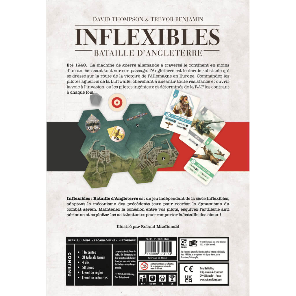 Inflexibles : Bataille d’Angleterre est un jeu indépendant de la série Inflexibles, qui adapte la mécanique des jeux précédents pour recréer la dynamique des combats aériens.