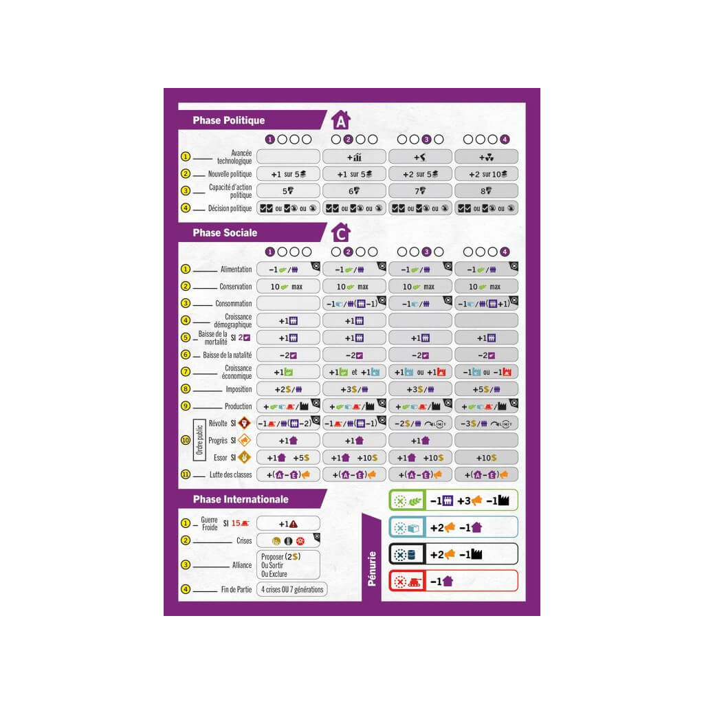 Limit se déroule en 7 générations mais la fin de la partie peut survenir avant si vous et vos adversaires déclenchez 4 crises globales. Chaque génération est composée de 3 phases :