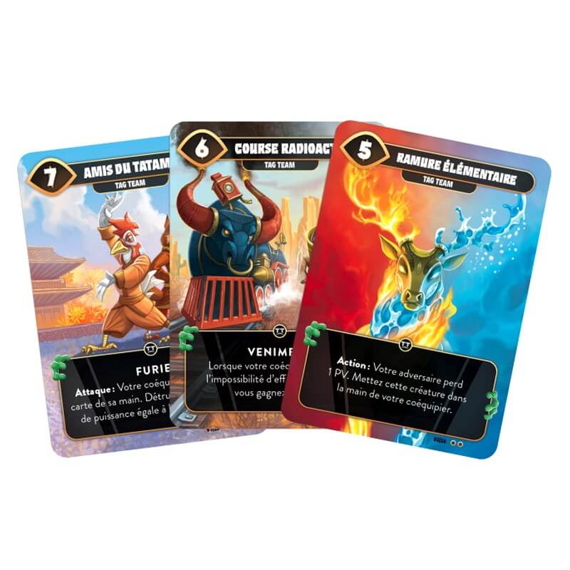 Doublez la stratégie, doublez le plaisir dans ce duel tactique en équipe au rythme effréné. Cet add-on introduit des cartes spécifiques au 2vs2 pour créer des combos avec votre coéquipier. Il offre un gameplay rapide avec seulement 3 cartes dans votre main et 3 cartes dans votre deck.