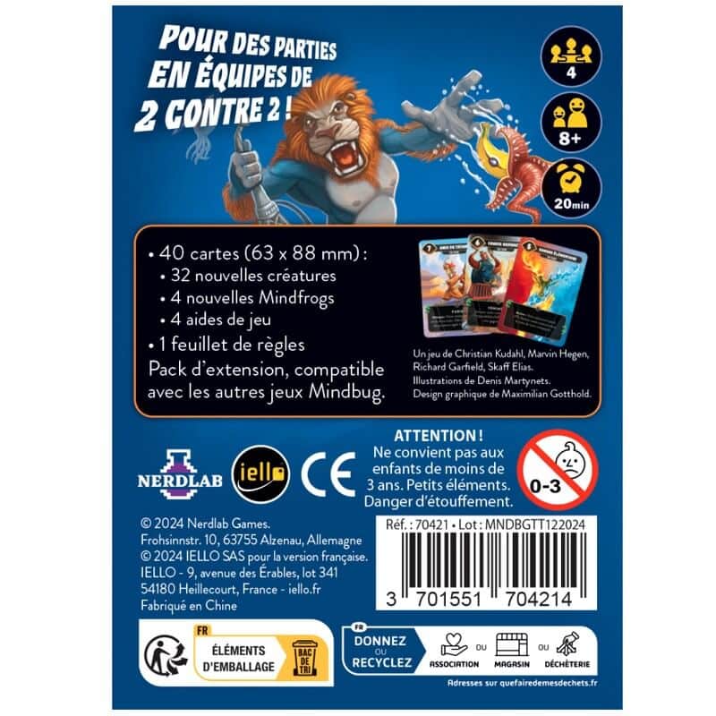 • 40 cartes (63 x 88 mm) : 32 nouvelles créatures , 4 nouvelles Mindfrogs, 4 aides de jeu