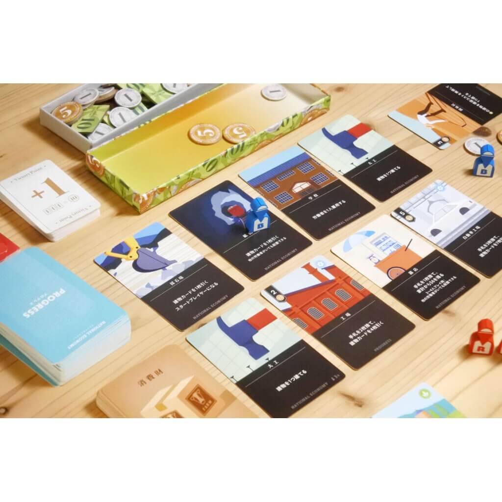 National Economy is a strategic economic card game set during the 19th and 20th centuries, when national economies rapidly expanded. Players act as business owners, hiring workers, constructing buildings, and managing cash flow to navigate a volatile and competitive market.