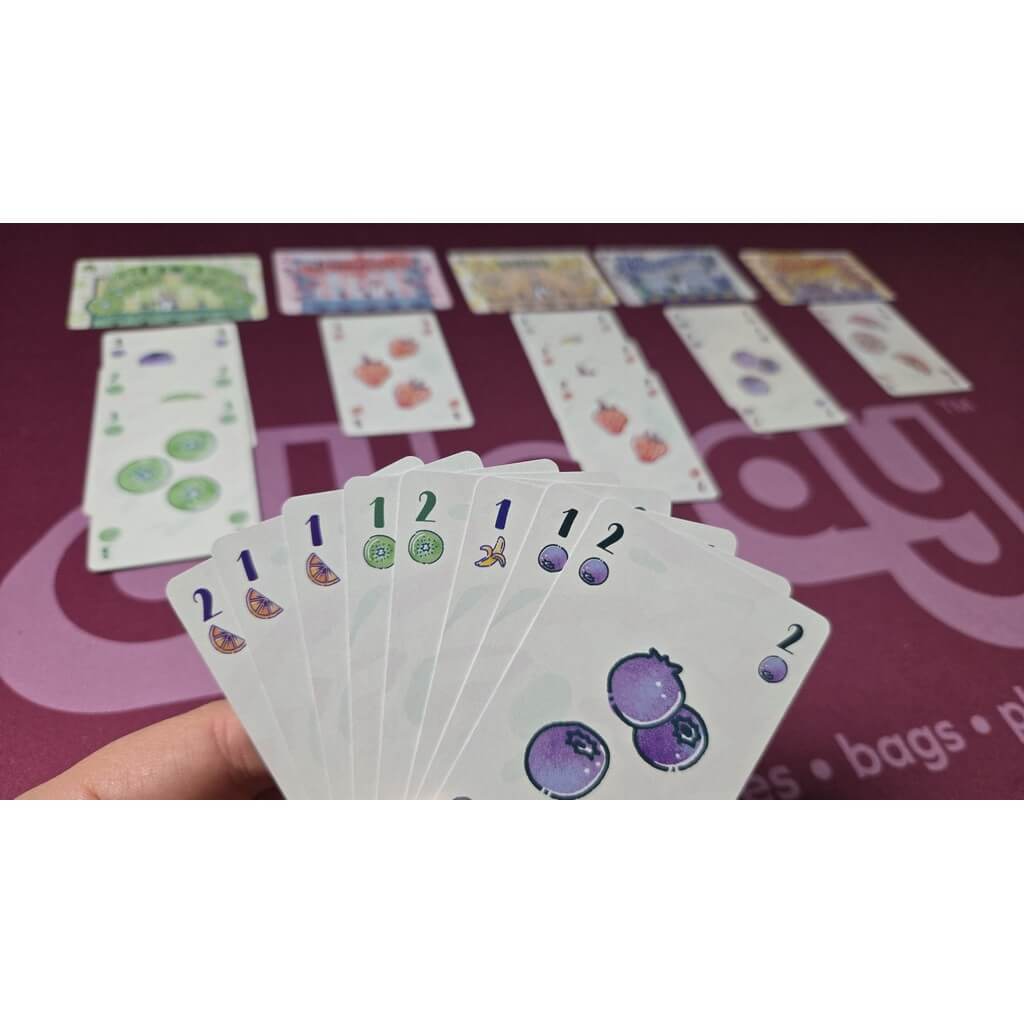 Finally, tally up your score. Each card left in your hand is worth points equal to the final value at the matching tap. So, if you ended with two strawberry cards and the tap value of strawberry was 8, you get 16 points.