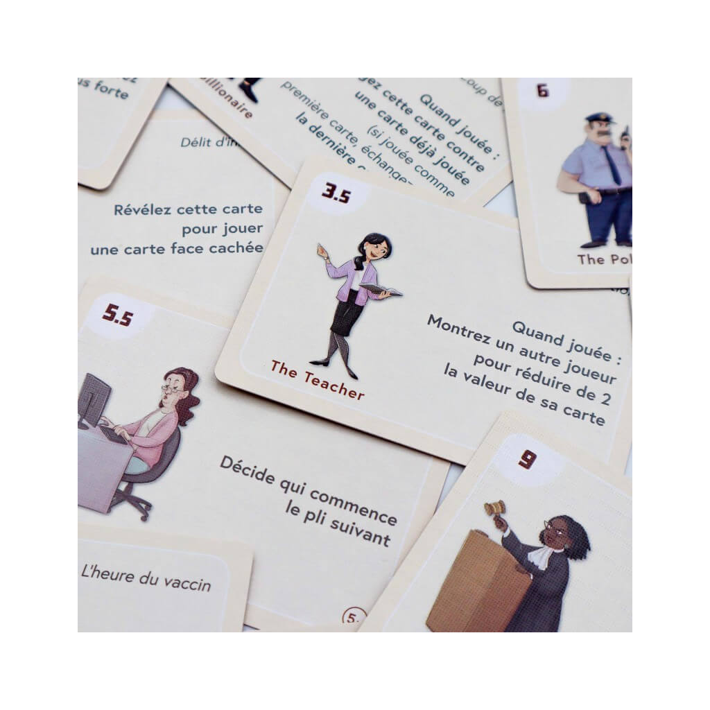 Le jeu comprend treize cartes de règles qui ajoutent de la variété en conférant à certaines cartes de personnage des capacités spéciales liées à leur profession : les ouvriers « se syndiquent », les milliardaires « s’emparent du pouvoir », la police « interpellent et fouillent », les scientifiques « démystifient », etc. Vous pouvez jouer avec des cartes de règles aléatoires ou utiliser l’un des scénarios suggérés dans les règles.
